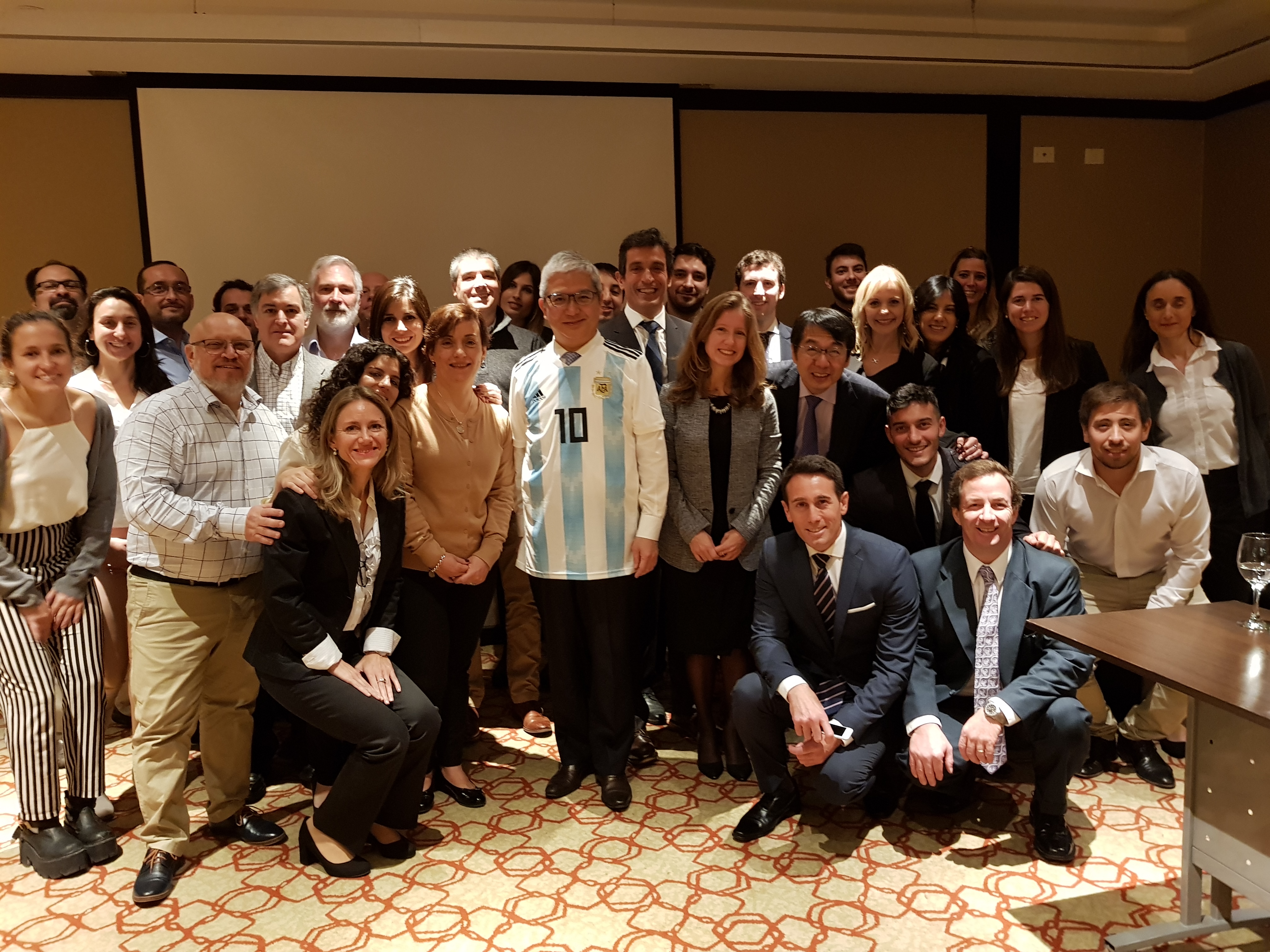 テルモ社長在任中、海外事業所のあるアルゼンチンにて(中央)