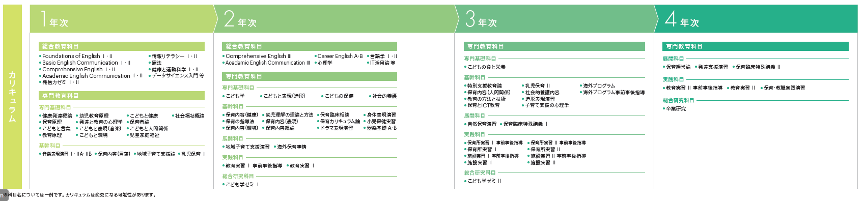 | 1年次 | 2年次 | 3年次 | 4年次 | |