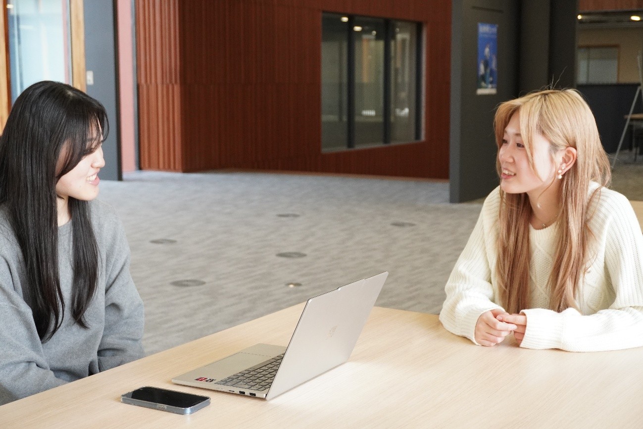 _この大学の日差しが入り込む明るい雰囲気や、寮生活で他学科の子たちと関われることはとても素敵ですよね。本日は取材させていただきありがとうございました。
