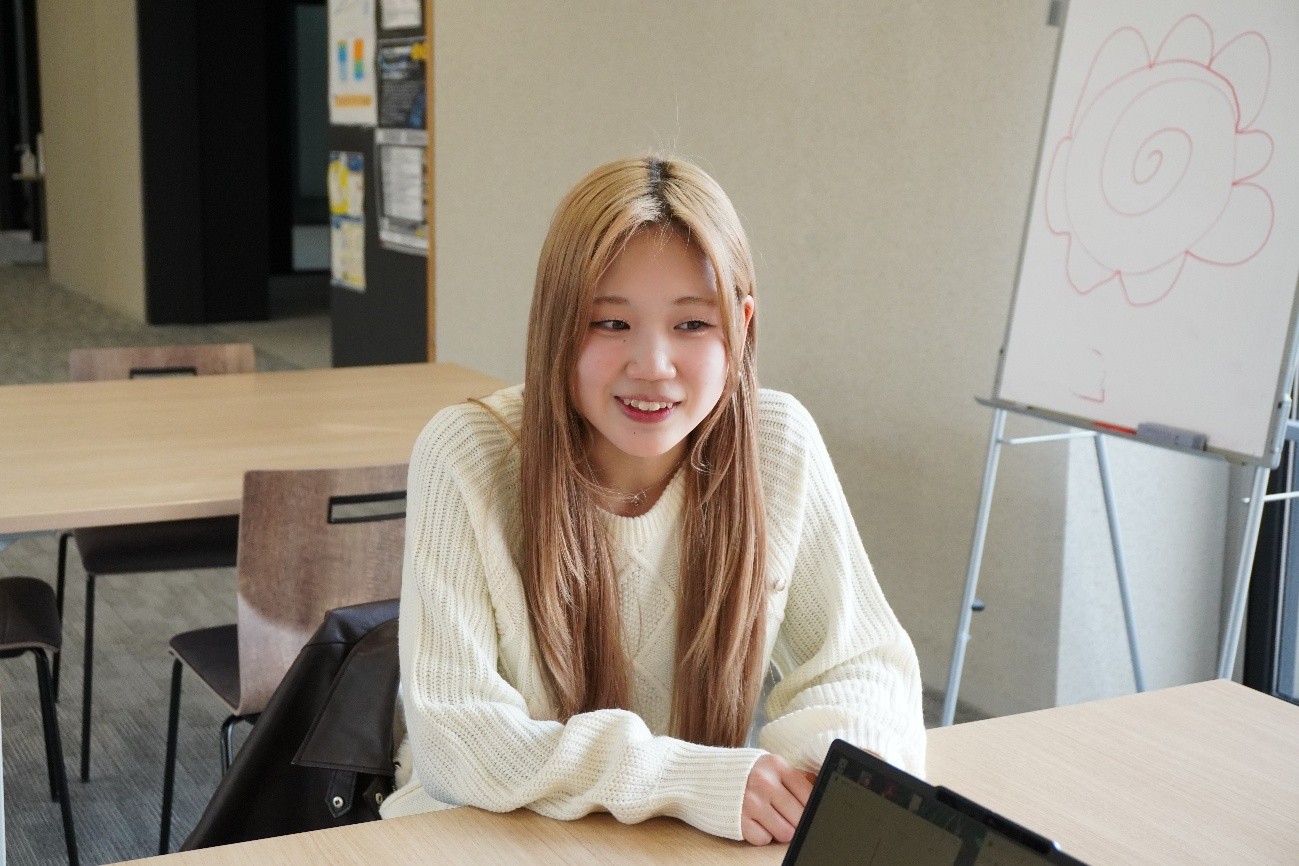 私はこの大学の明るく温かい雰囲気が好きです。寮では1人の時間をつくることが難しいと感じることもありますが、キャンパスでは1人でリラックスできることも魅力のひとつです。居心地がよく長く過ごしたくなるような空気に包まれているため、自然と心が落ち着きます。そのような雰囲気の中で勉強をしたり、友人と話したり、思い思いの時間を過ごすことができることも、この大学ならではの魅力だと感じています。また、寮生活を通してさまざまな子たちと関わることができることも貴重で素晴らしい経験になっています。