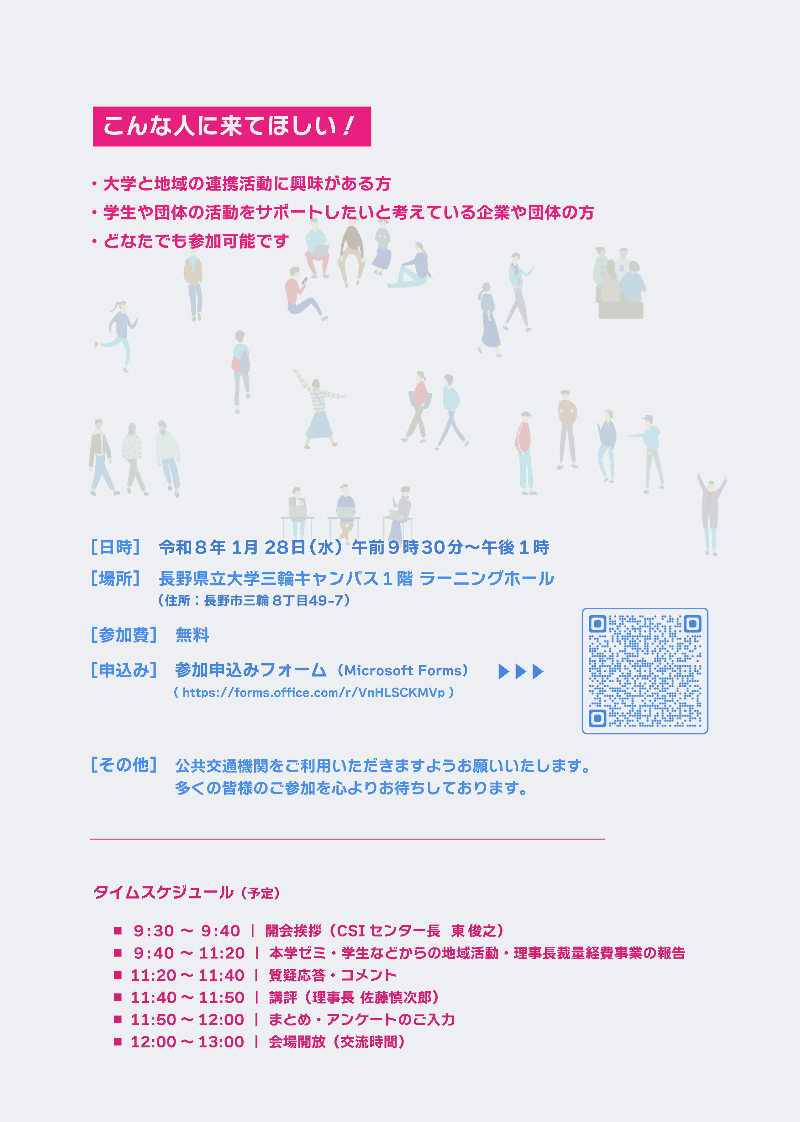 長野県立大学CSI公開講座 「地域活動報告会」 を開催します!