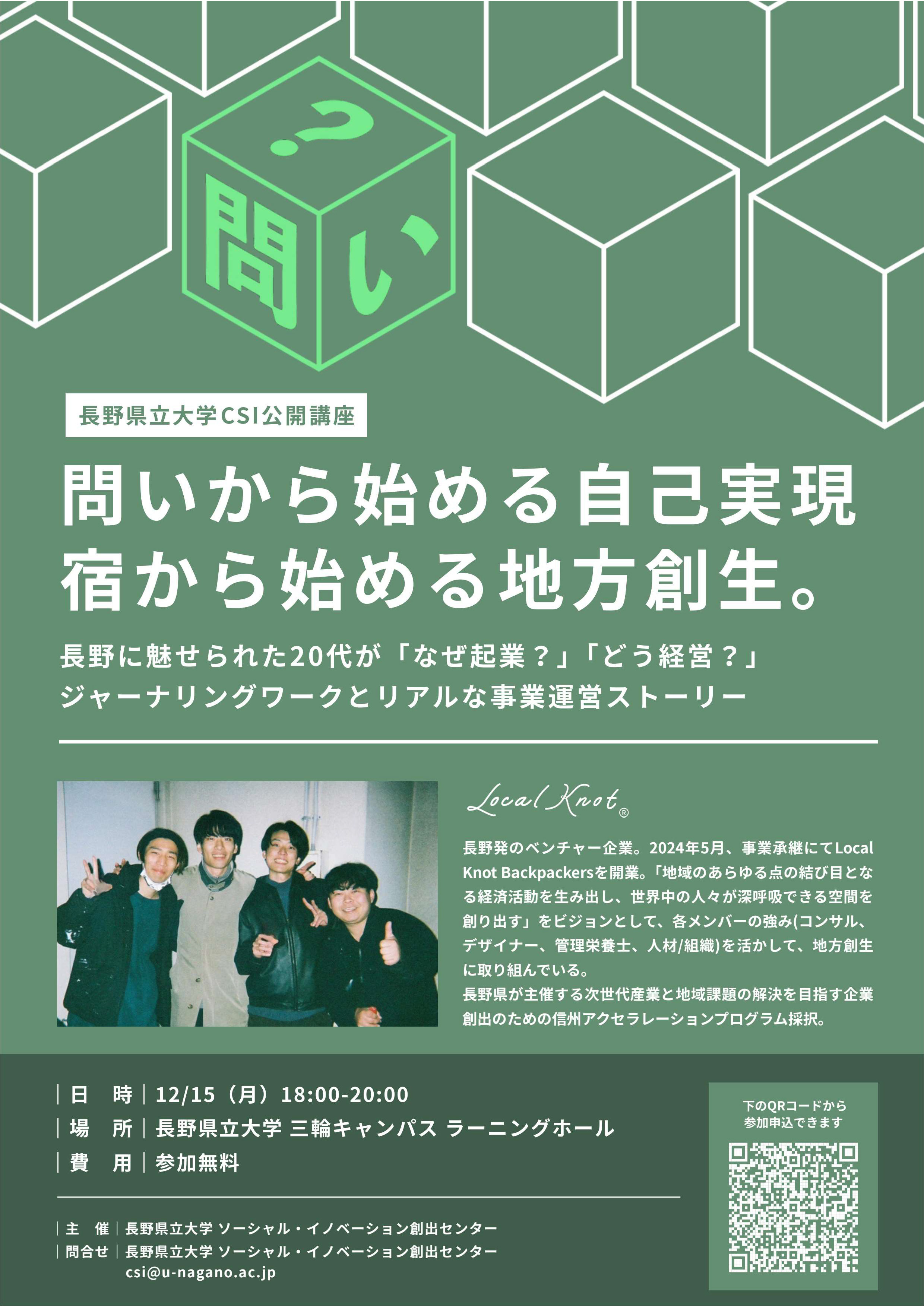 令和7年度 長野県立大学CSI公開講座 「問いから始める自己実現。宿から始める地方創生。」を開催します