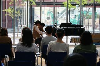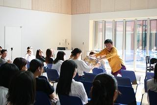 第1回目のワークショップでは、保育現場に即した即興演奏方法についてのお話があり、学生たちはメモをとりながら聴いていました。全員で即興演奏を行う場面では、それぞれの個性が表現され、参加者全員での合奏はみんなが一つになり大変盛り上がりました。