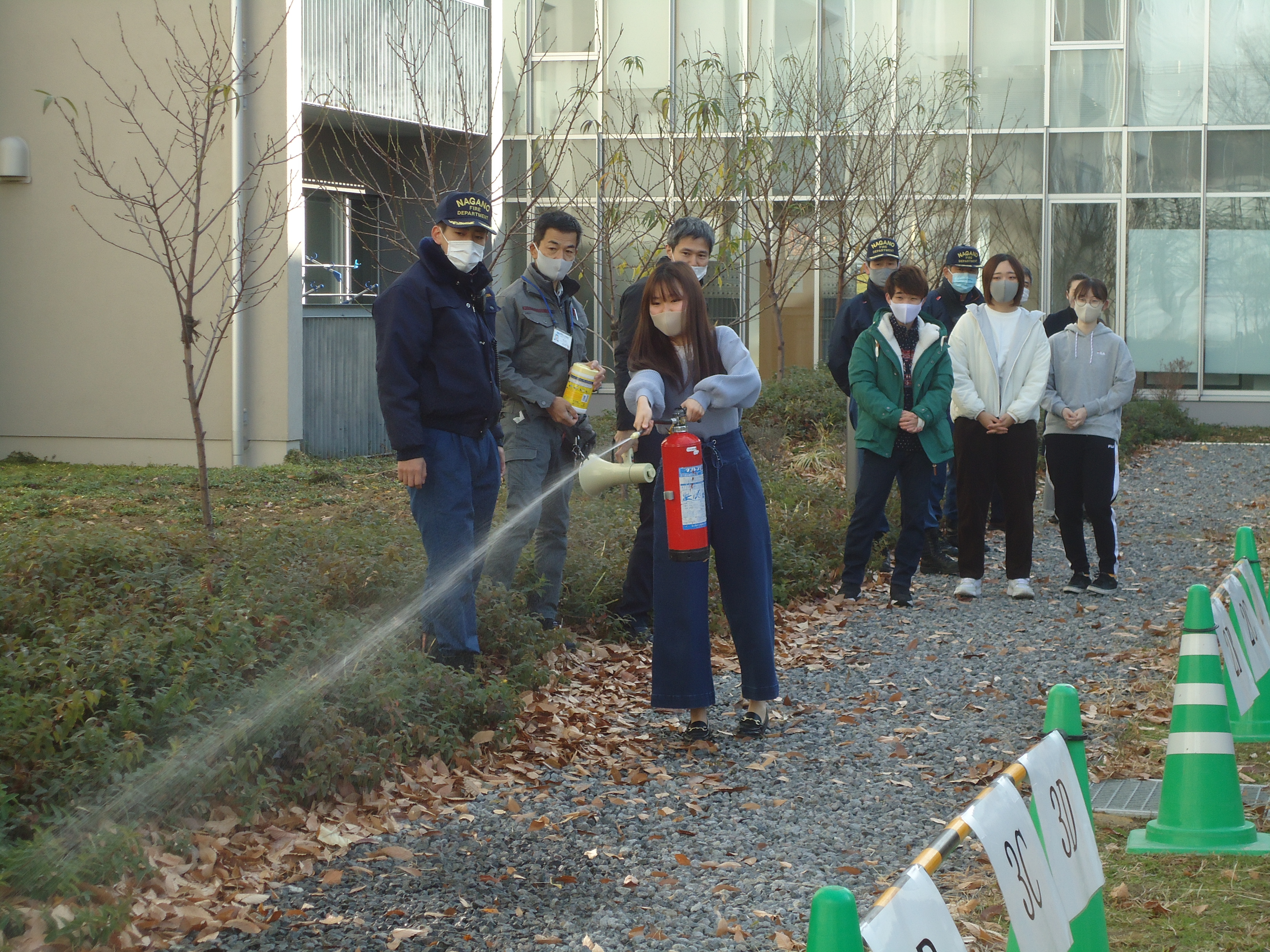11月25日に後町キャンパス象山寮に入居している1年生及び2年生(レジデント・アシスタント)、教職員を対象とした避難・消防訓練を実施しました。訓練では消防署への出火通報訓練、それぞれの居室から中庭に避難訓練を行い、その後、寮内の消火栓や火災報知器の取り扱いの説明を聞きました。一連の取り組みを行い、各自の防災意識の向上及び震災・火災時における危機意識の向上を図りました。 また、これから乾燥する季節になり、火の始末には充分気をつけてまいります。