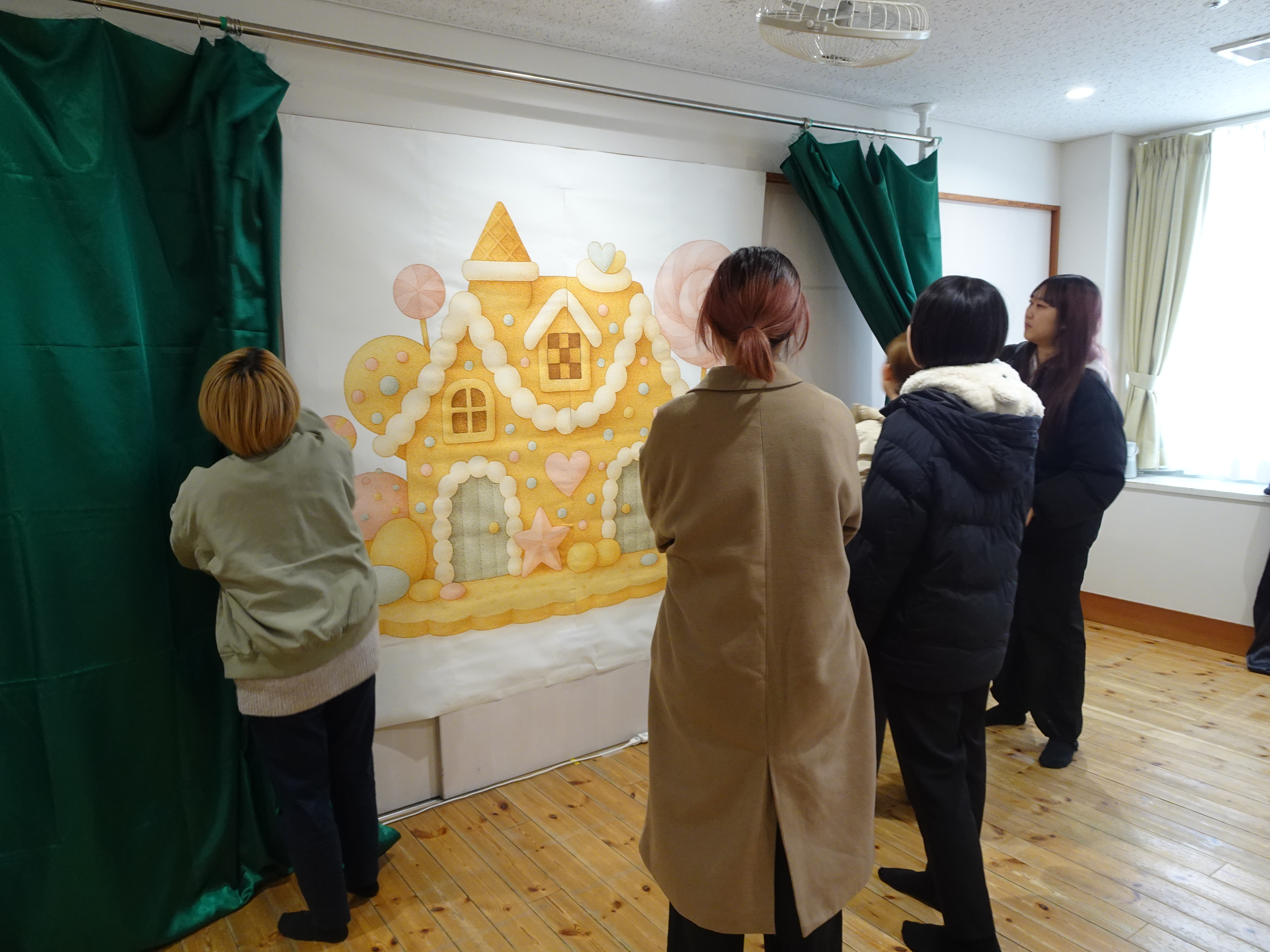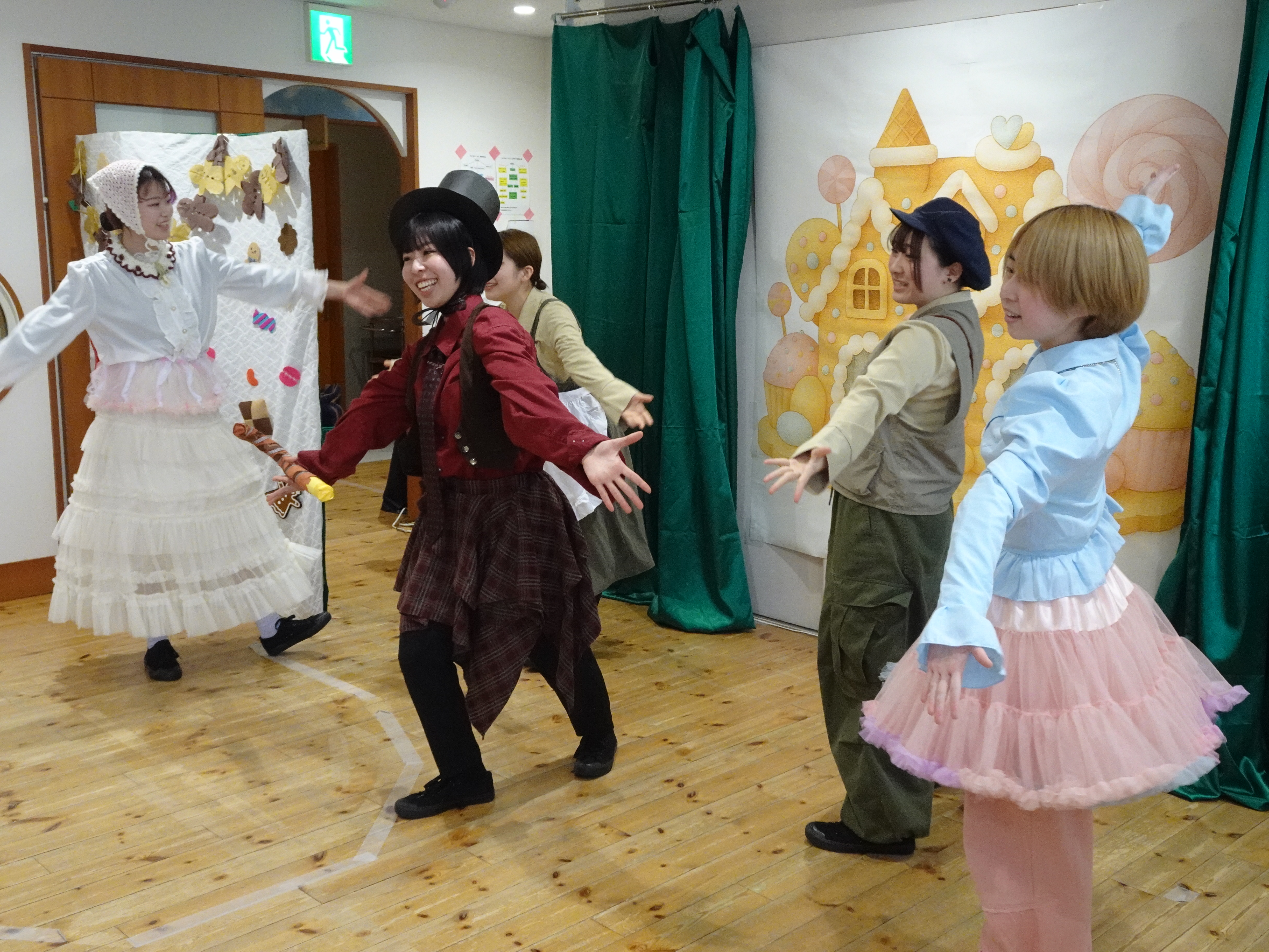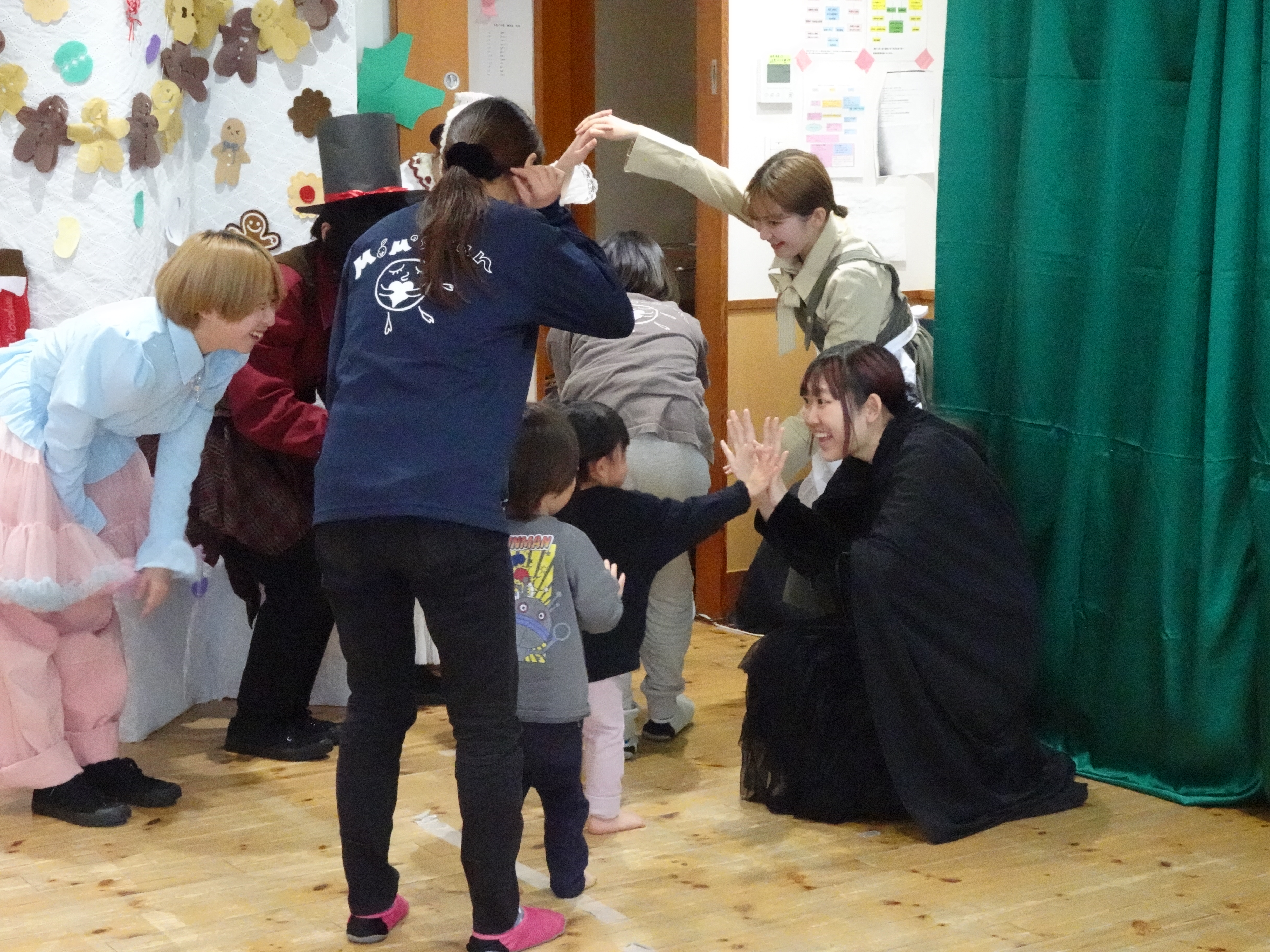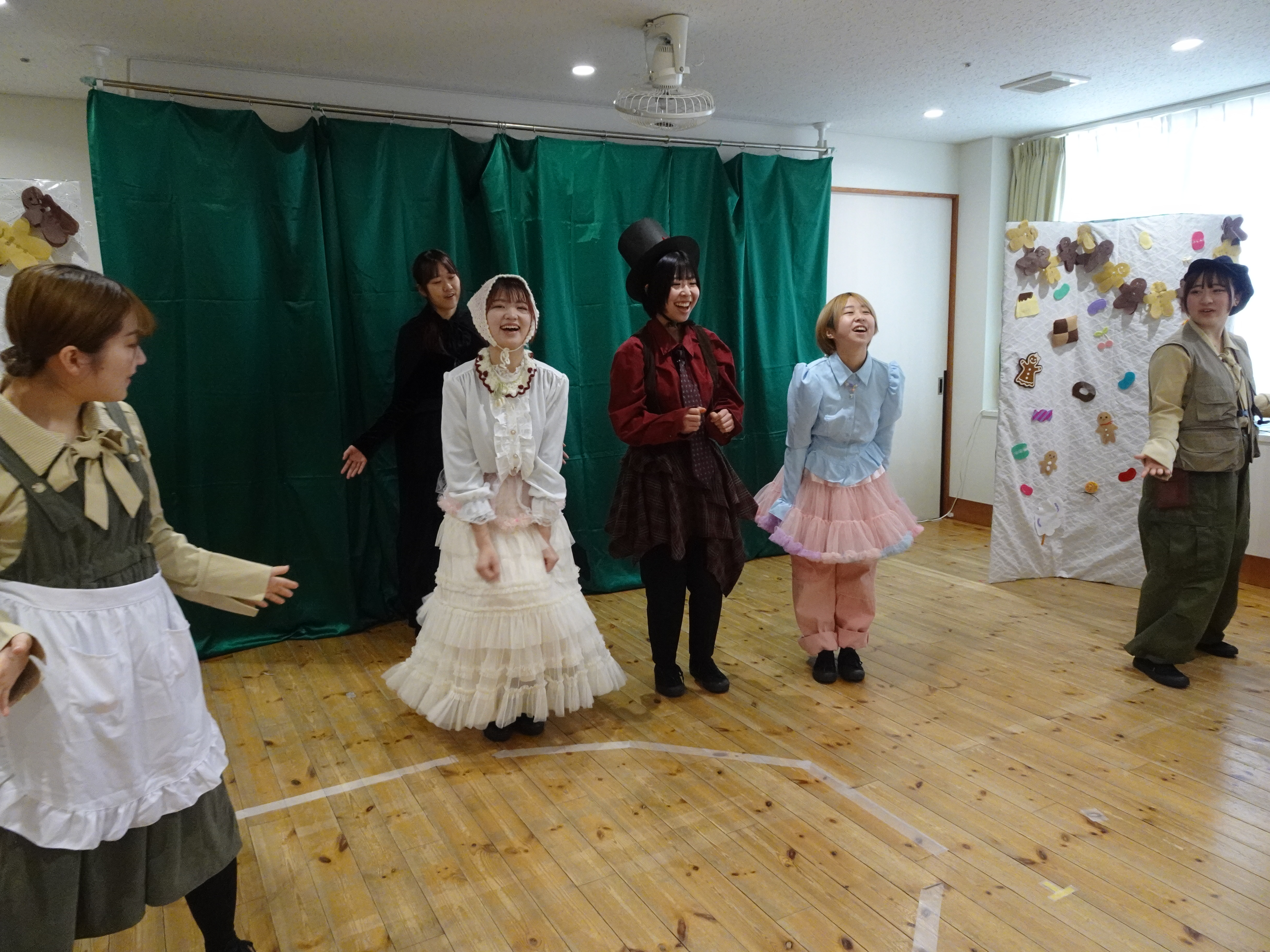 当日は乳児さんも多く鑑賞してくださり、「楽しんでもらえるだろうか」と学生たちは緊張した様子でした。しかし、園児さんたちが真剣に舞台に向き合い、一生懸命見てくれる姿に励まされ、学生たちも最後まで力を尽くして発表することができました。