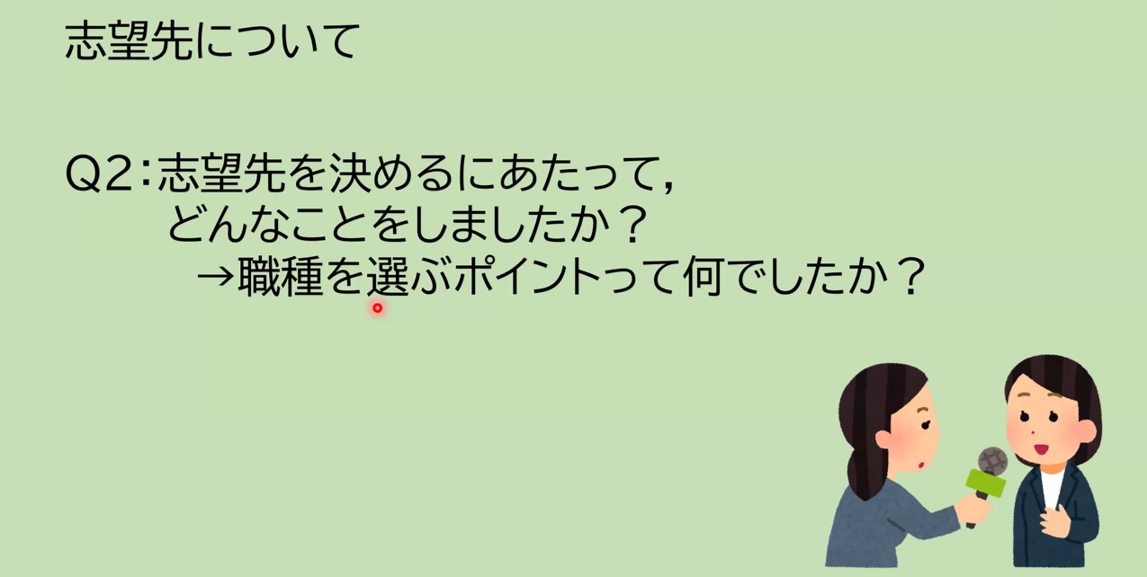 後半では、国家公務員の内定を得た4年生の先輩がゲストとして登場。「なぜ公務員なのか」「効率的な学習方法」など、実体験をもとに最も身近な存在として後輩へエールを送りました。