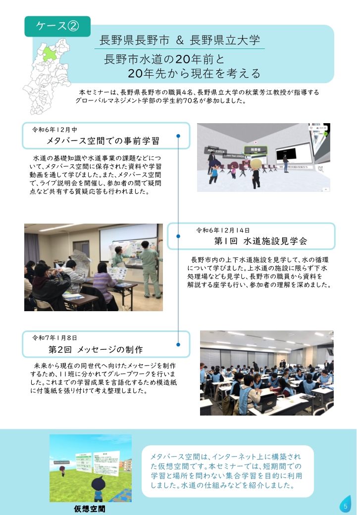 グローバルマネジメント学部講義で、長野市水道局・横浜ウォーター株式会社と連携実施した様子が、国土交通省の広報媒体「いま知りたい水道-水のミライを考える-」に掲載されました(R6年度の取組)