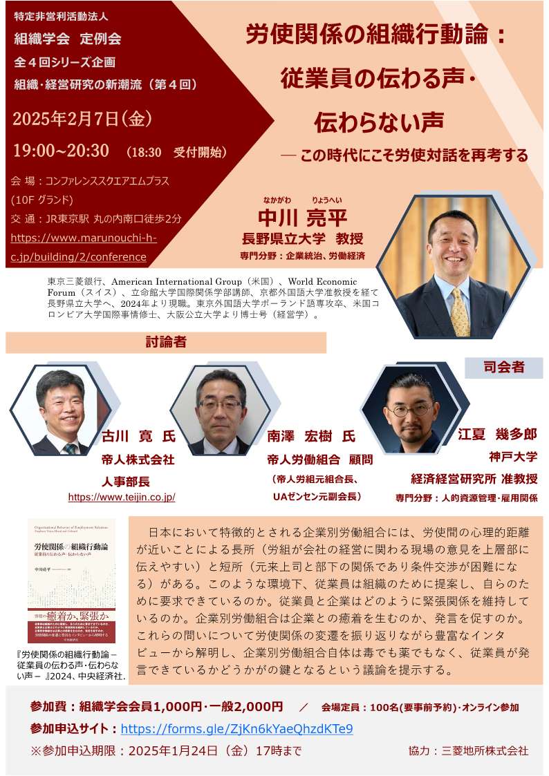 【イベント名】組織学会 企画・定例会 丸の内シリーズ企画 組織・経営研究の新潮流(第4回)