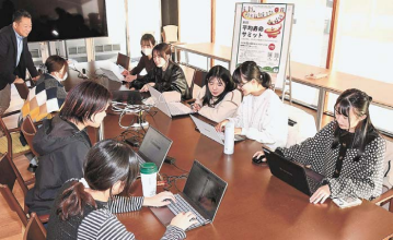 平均寿命サミットの発表の準備を進める本学学生ら