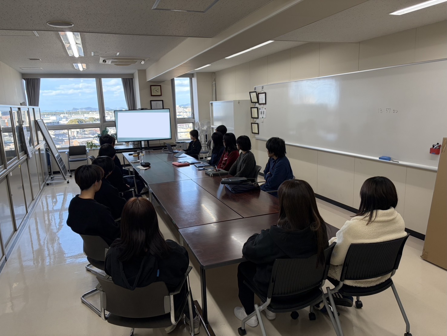 2026年1月30日および31日、長野県立大学 健康発達学部 食健康学科の塩屋ゼミの教員および3年生3名が、共同研究先である福岡工業大学 工学部 生命環境化学科の赤木研究室および奥田研究室を訪問しました。これまでオンラインで交流を行ってきましたが、今回が対面での初めての合同ゼミとなりました。